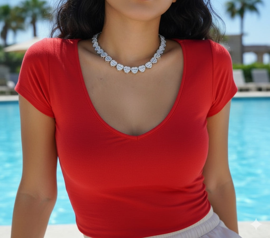 Baguette Heart Chain Necklaces for Women 12 mm Iced Out Cubic Zirconia Stones Necklace Fashion Jewelry for Women Gift
