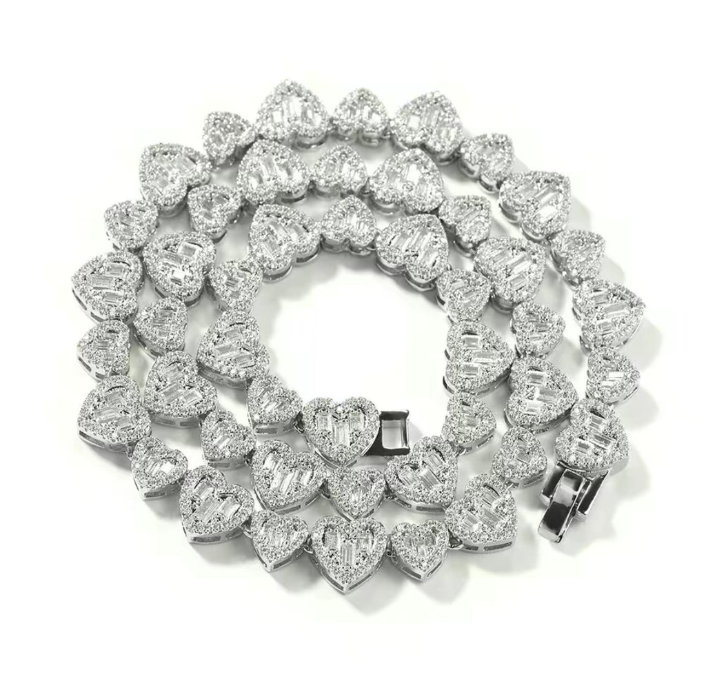 Baguette mini Heart Chain Necklaces for Women Iced Out Cubic Zirconia Stones Necklace Fashion Jewelry for Women Gift