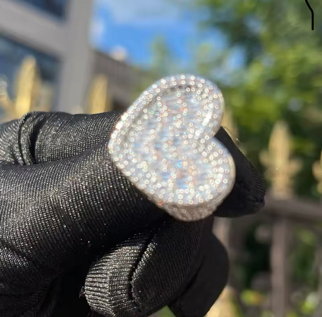 Heart  ring ,heart CZ Ring , luxury ring , Full Cubic Zircon Paved Copper Big Heart Ring Iced Out Bling Hip Hop Fashion - Lavishluxxshop