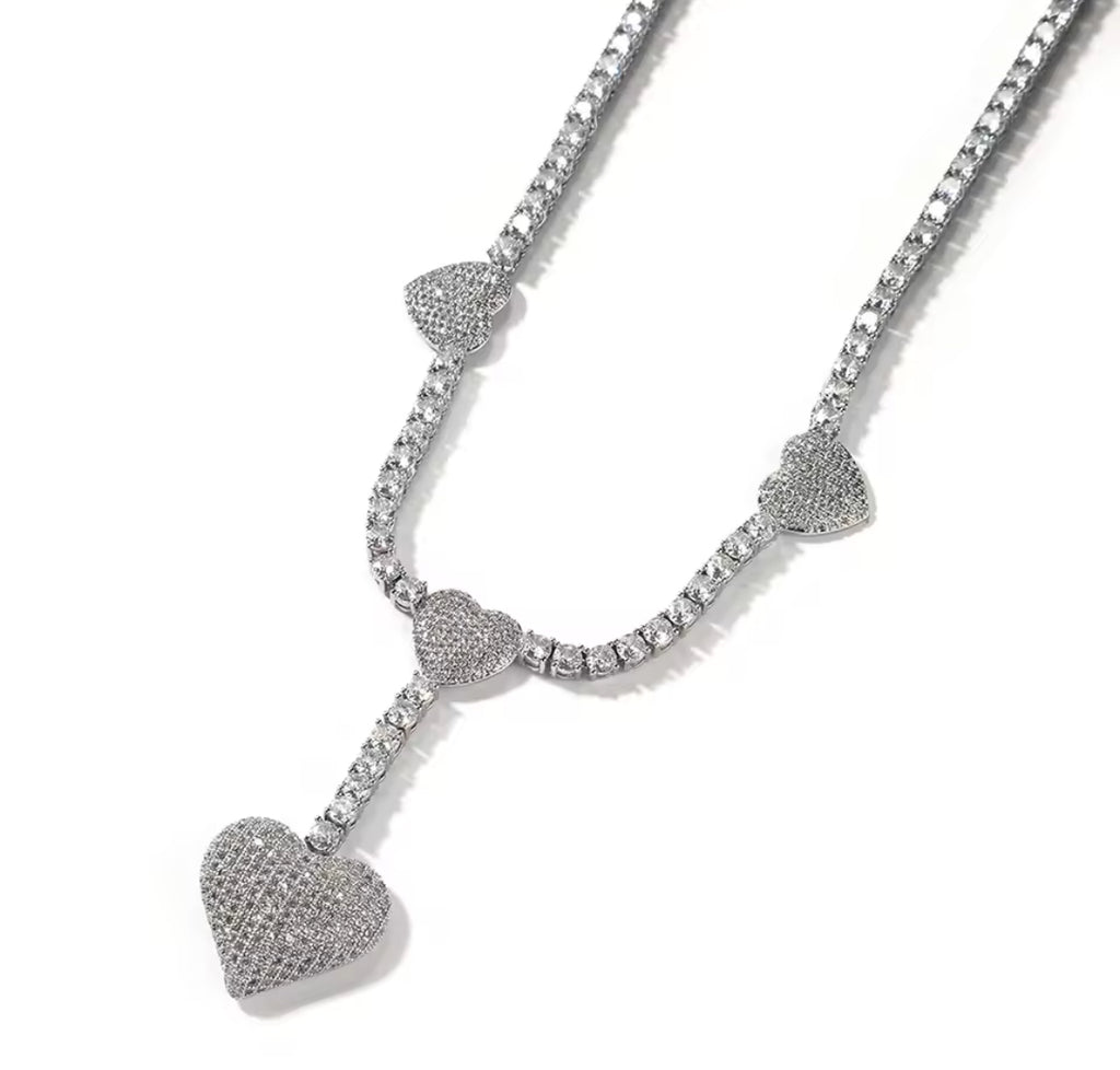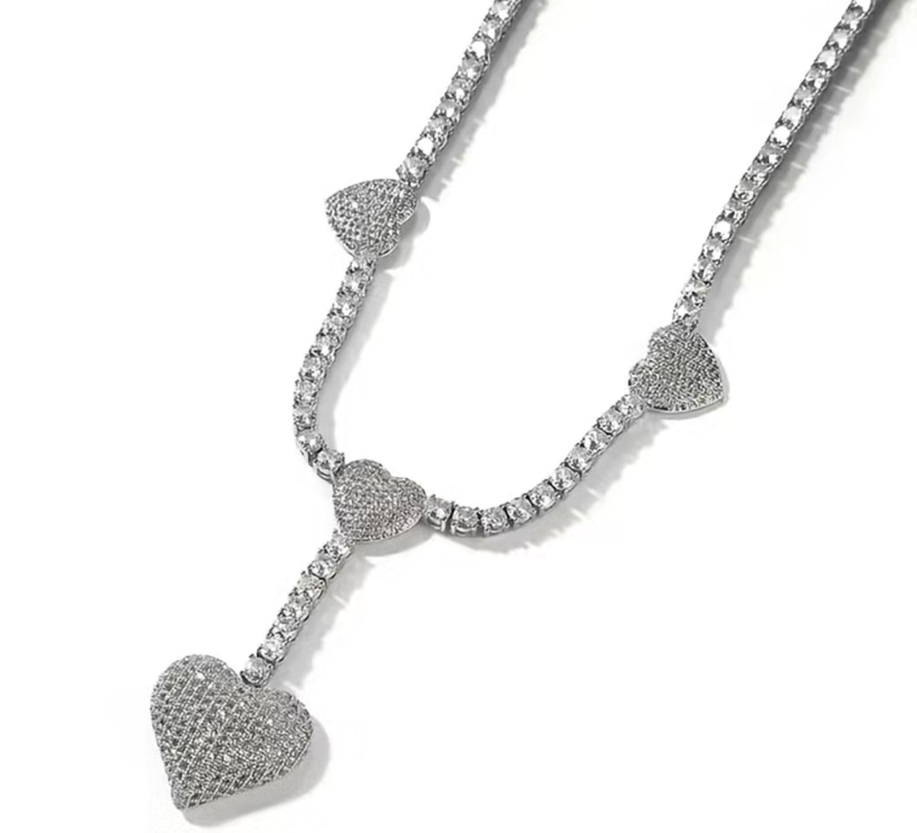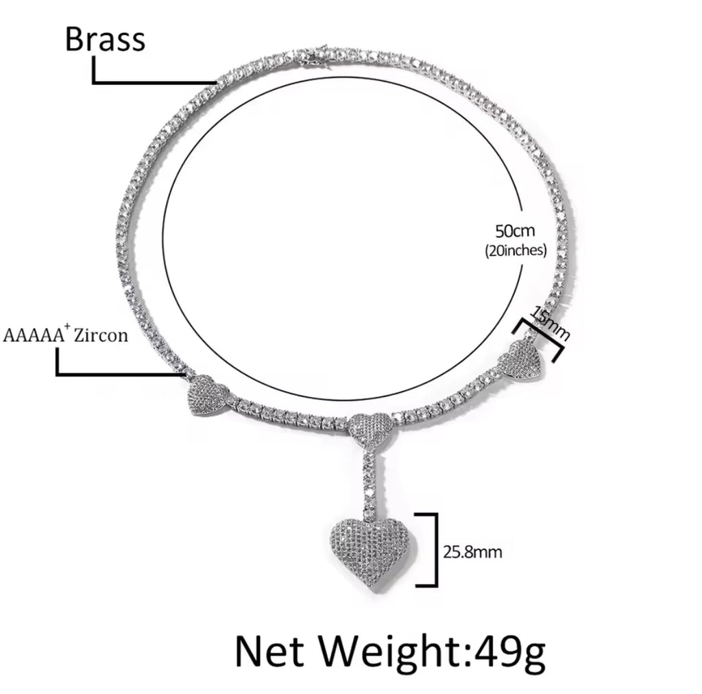 Shine bright with this dazzling 3 Heart Necklace, designed to turn every outfit into a statement. Featuring a sleek 4mm iced-out tennis chain paired with a sparkling butterfly pendant, this piece blends elegance with a trendy drip style. The three heart details symbolize love, passion, and strength—making it more than just jewelry, but a meaningful accessory.