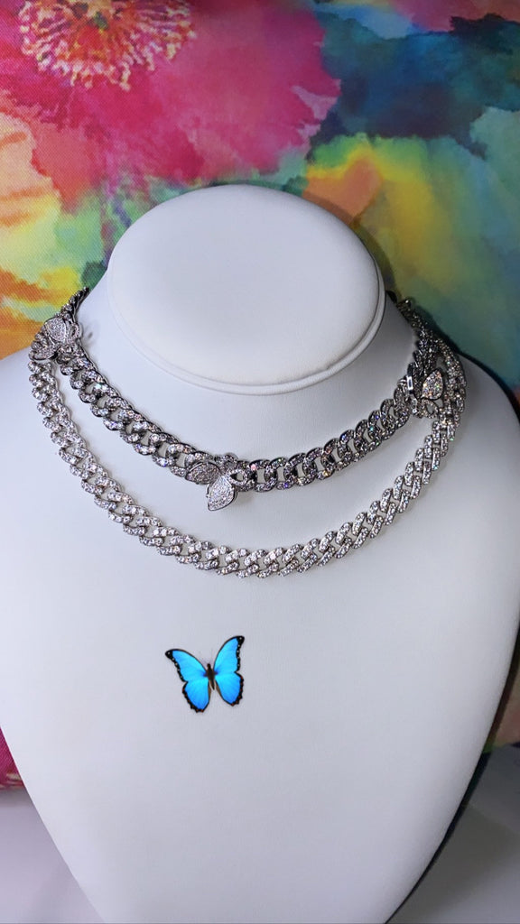 2 piece SET gold cuban butterfly tennis choker , cz tennis butterfly necklace ,cuban bling iced tennis butterfly, butterfly necklace