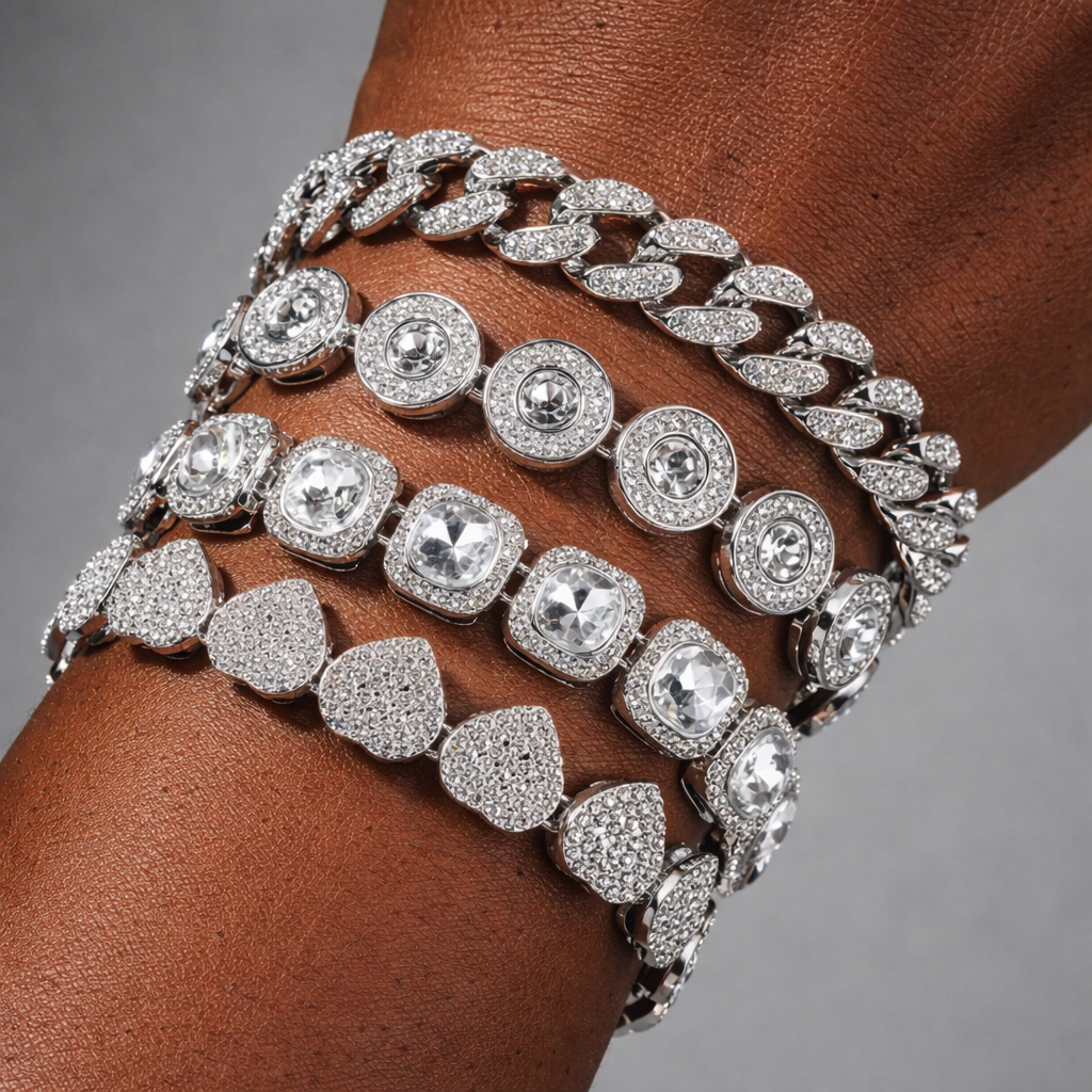 Upgrade your jewelry collection with this luxury 4-piece Cuban link bracelet set, designed to add instant shine and elegance to any outfit. This stunning stack includes four unique bracelets featuring iced hearts, crystal halo settings, bold Cuban links, and sparkling statement stones for the perfect layered look.